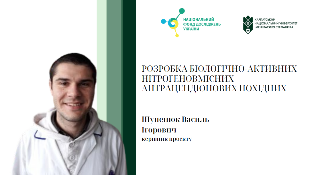 Проєкти національного фонду Розробка біологічно-активних нітрогеновмісних антрацендіонових похідних е-mail: vasyl.shupeniuk@cnu.edu.ua Інтермедіати фенілпропаноїдного шляху як речовини для продовження тривалості і якості життя е-mail: bayliak@ukr.net Симетрії в алгебраїчних та топологічних структурах на нескінченновимірних аналітичних многовидах та їх можливі застосування е-mail: andriy.zagorodnyuk@cnu.edu.ua Асиметричні суперконденсатори з водним електролітом на основі нанокомпозитів оксиди заліза і нікелю / відновлений оксид графену та мікропористого вуглецю е-mail: volodymyr.kotsuybynsky@cnu.edu.ua