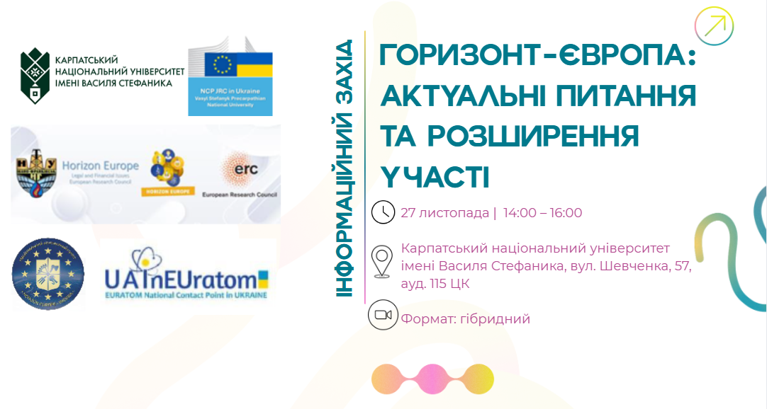 Запрошуємо дослідників, викладачів, здобувачів освіти та всіх, хто цікавиться європейськими науковими можливостями, на захід, присвячений програмі «Горизонт Європа»!