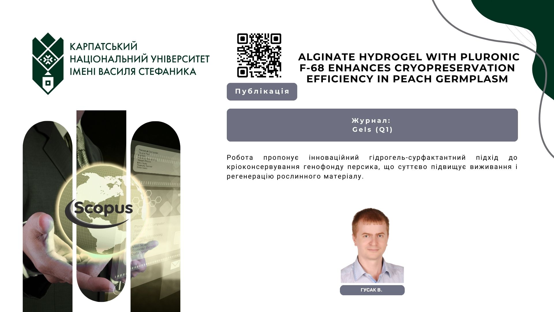 Робота пропонує інноваційний гідрогель-сурфактантний підхід до кріоконсервування генофонду персика, що суттєво підвищує виживання і регенерацію рослинного матеріалу.