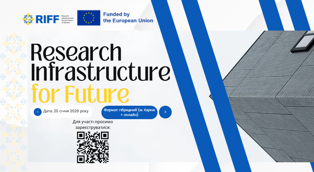 Нагадуємо про проведення та запрошуємо вас взяти участь в Інформаційному дні проєкту RIFF (Research Infrastructure for Future), який відбудеться 20 січня 2026 року у гібридному форматі (офлайн у м. Харків та онлайн).