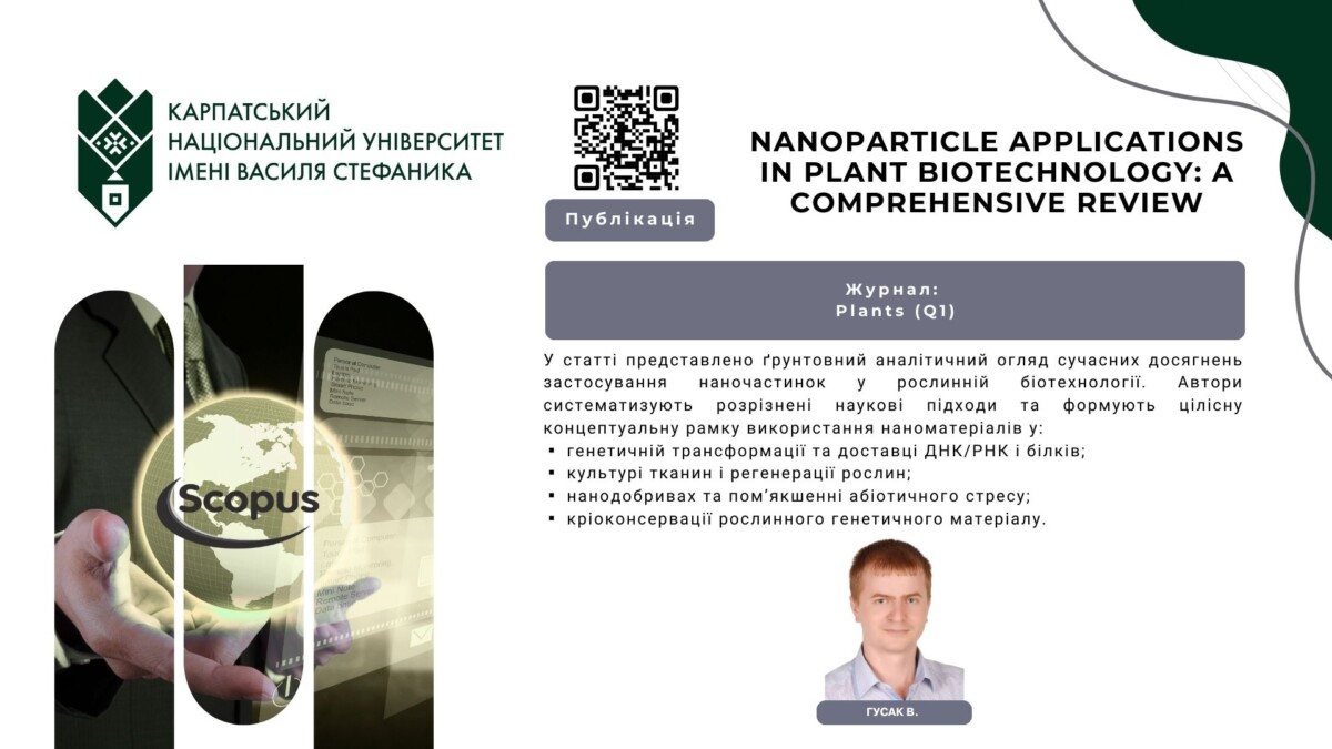 У статті представлено ґрунтовний аналітичний огляд сучасних досягнень застосування наночастинок у рослинній біотехнології. Автори систематизують розрізнені наукові підходи та формують цілісну концептуальну рамку використання наноматеріалів у: