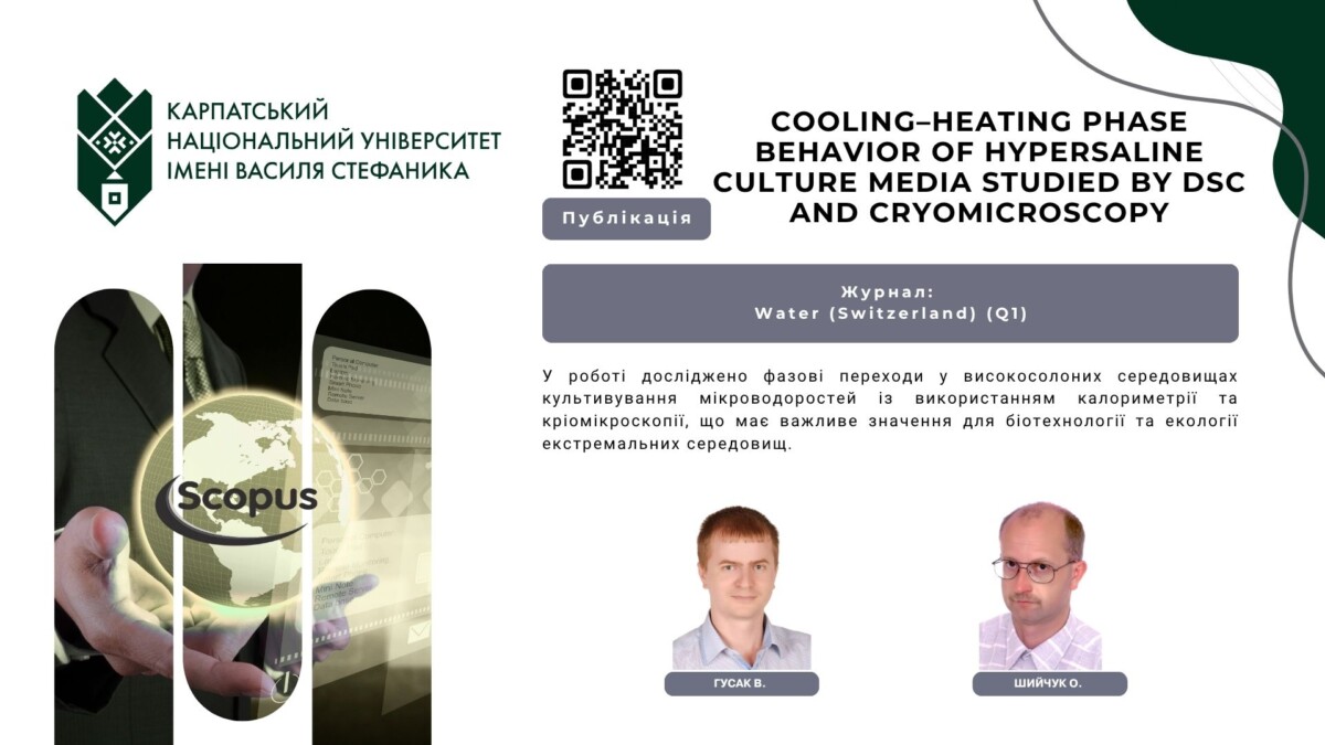 У роботі досліджено фазові переходи у високосолоних середовищах культивування мікроводоростей із використанням калориметрії та кріомікроскопії, що має важливе значення для біотехнології та екології екстремальних середовищ.