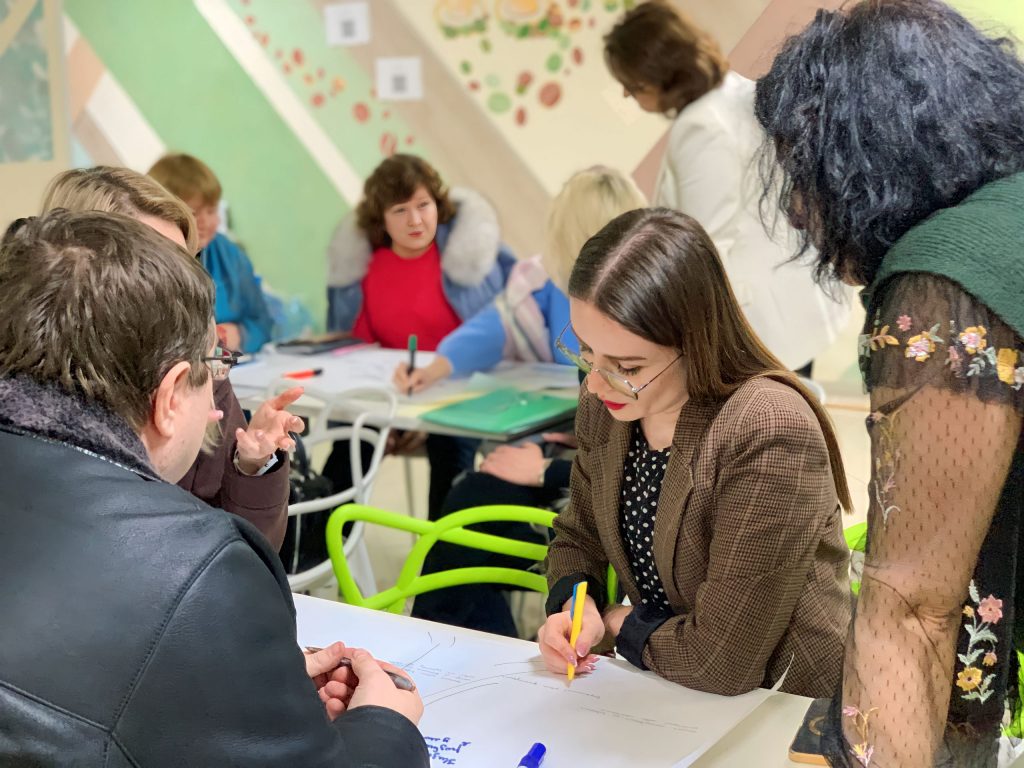 The training was held in an interactive practice-oriented format. The participants were randomly divided into teams that included representatives of different specialties. Thus, the teachers had the opportunity to generate joint project ideas, develop the main components of its concept, such as the problem, goal and objectives, activities and expected results of the project.