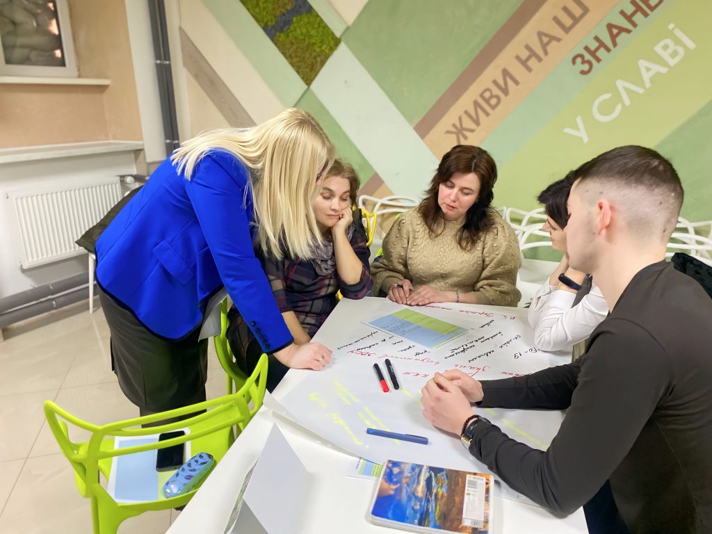 During one of the practical parts of the training, Svitlana Kropelnytska noted: “In project activities, one should be well aware that such activities are multi-vector and require a diversified approach to forming a project team, when specialists from different fields, directions and specialties are involved. Therefore, one should not isolate oneself and work on a project idea alone, but rather involve as many stakeholders as possible in the discussion.”